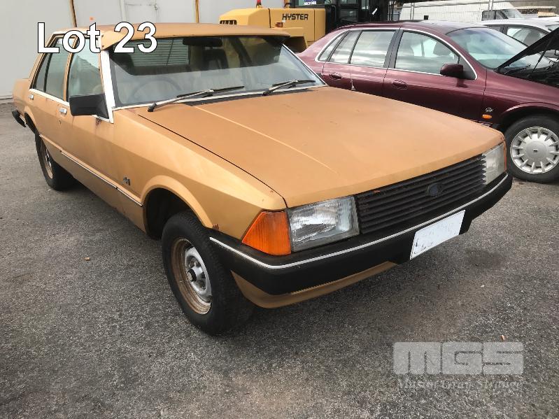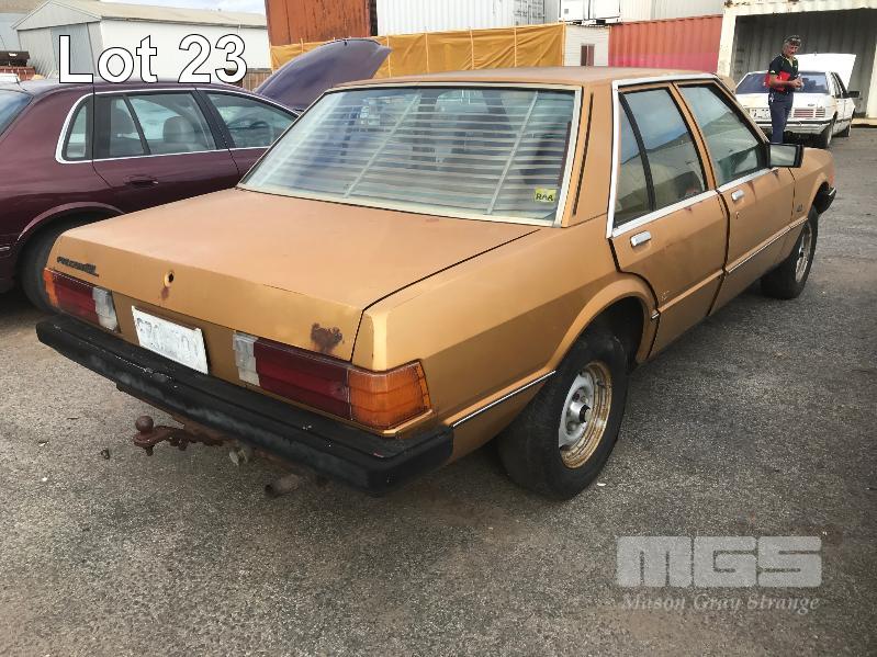 1979 FORD XD FALCON GL SEDAN REG: SZO 791 (SA) VIN: JGZ3WS60710 ODO: 114,699 kms SHOWING 4.1 LITRE 6 CYLINDER, 3 SPEED COLUMN SHIFT AUTO, PETROL, GOLD, 4 DOORS, 5 SEAT, AIR CON, POWER STEERING, TOW BAR (NO PAPERS, NO KEYS, NO OWNER'S MANUAL, NO SERVICE BOOKS) CONDITION: EXTERIOR - RUST IN PLACES INTERIOR - FAIR FOR AGE BOOT - LOCK REMOVED