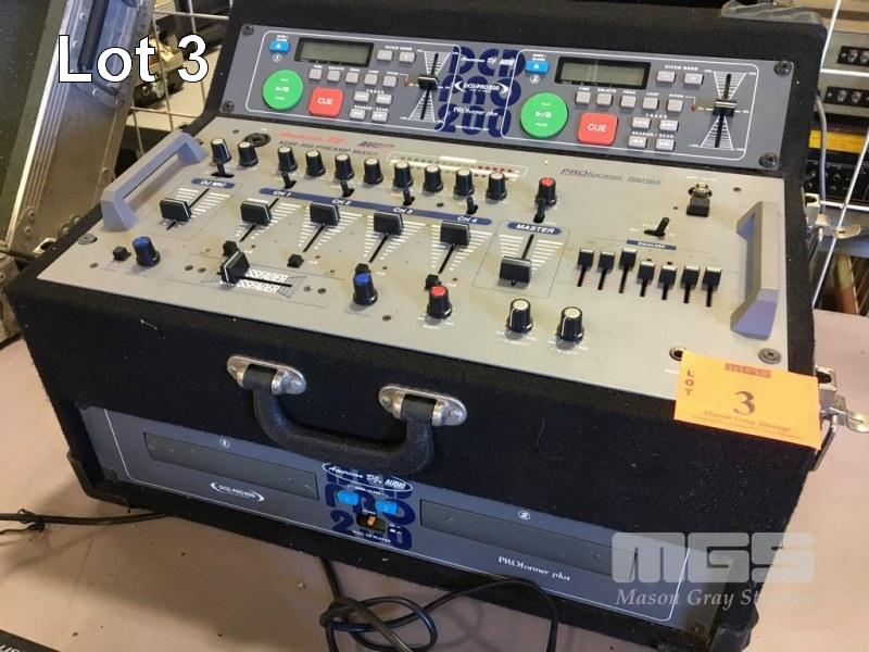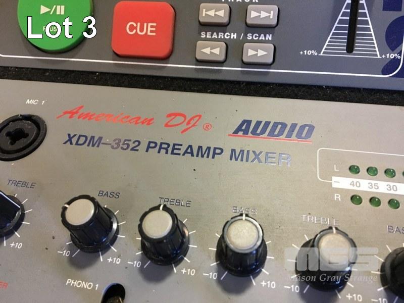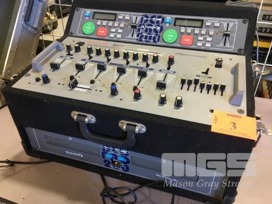 AUDIO PRE AMP MIXER, AMERICAN DJ MOD: XDM-352 PRO FORMER SERIES WITH DUAL CD PLAYERS IN TRAVEL CASE, 240V