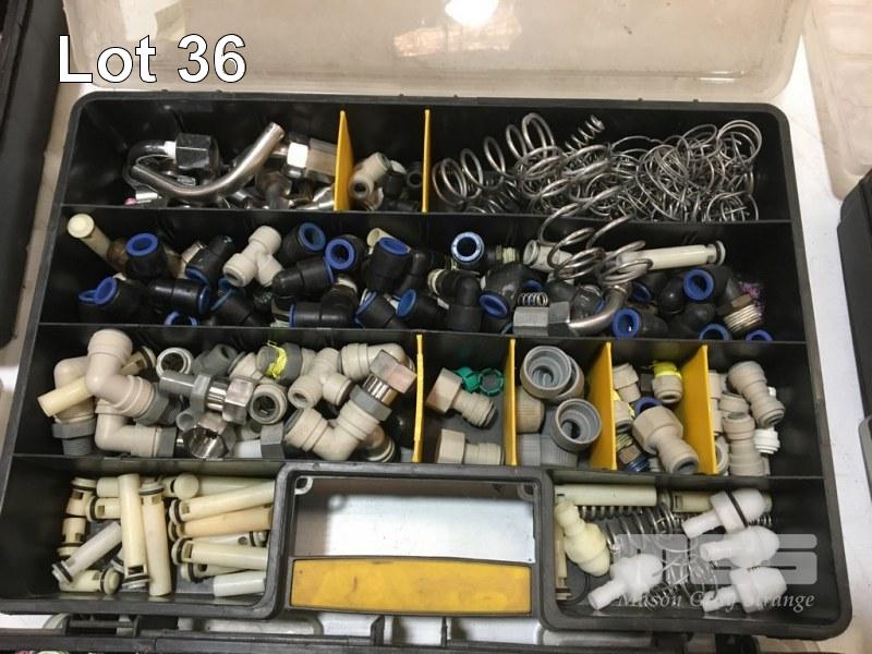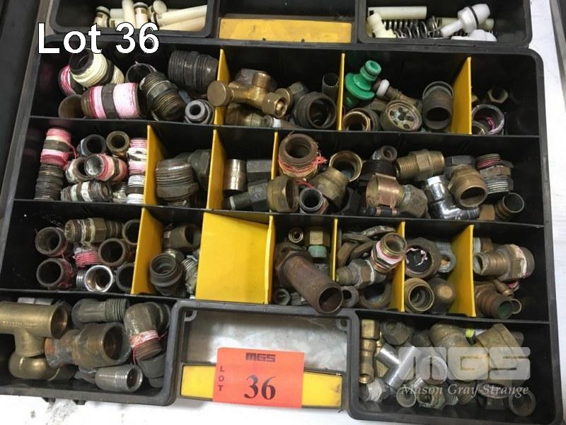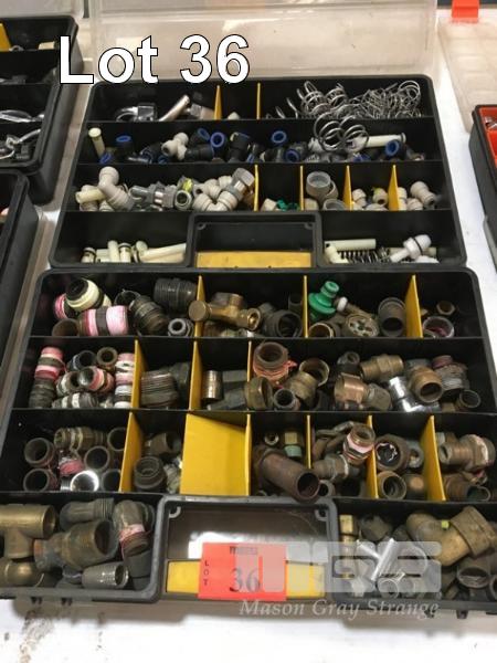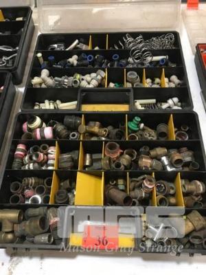 GAS LINE & BRASS PLUMBING/PIPE FITTINGS, JOINERS, REDUCERS, T & ELBOW JOINTS, ETC CONTENTS 2 x PARTS BOXES