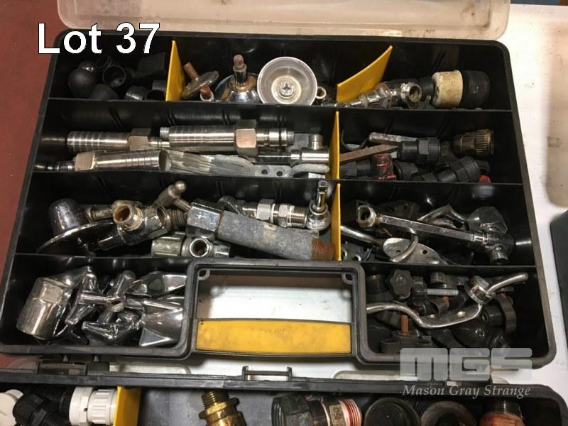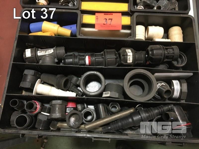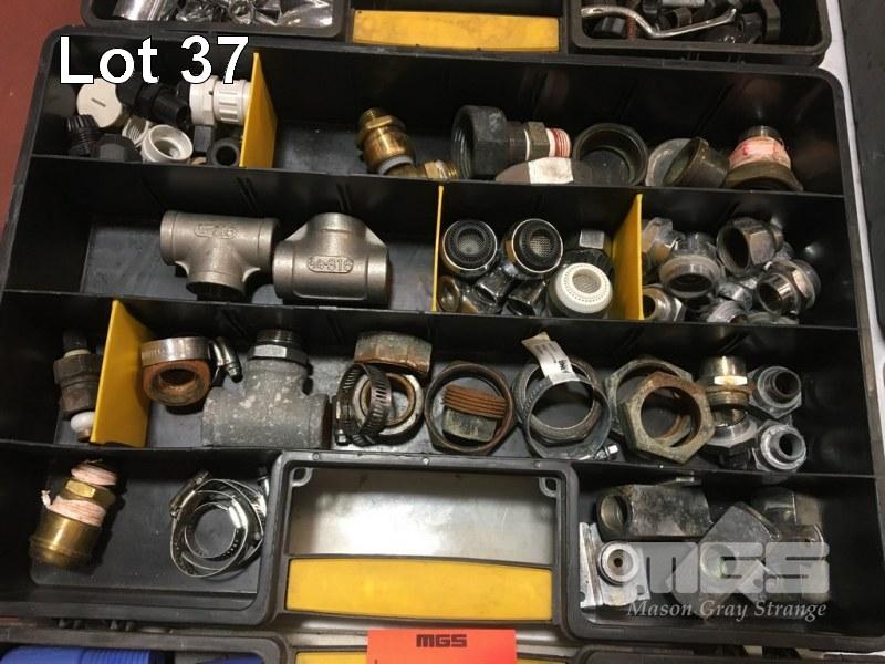 STAINLESS STEEL & PLASTIC PIPE LINE COMPONENTS, INC JOINERS, REDUCERS, TAP FITTINGS, ETC CONTENTS 3 x PARTS BOXES