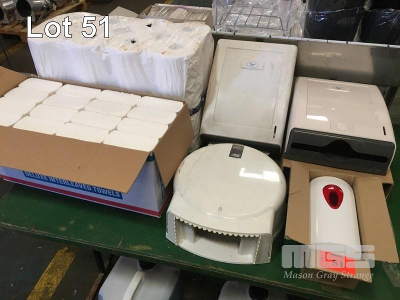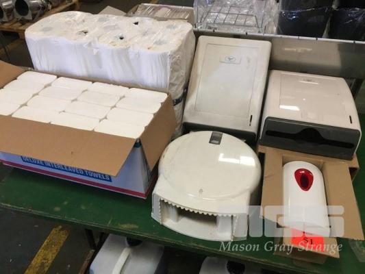 2 x REGAL DELUXE INTERLEAVED TOWEL DISPENSERS & BOX TOWELS, TOLET ROLL & SOAP DISPSNER & PACK YORK TOWEL ROLLS