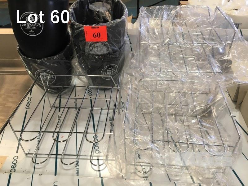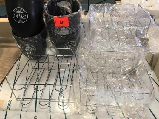 4 x BANROCK STATION WIN ECOOLER BUCKETS & 4 x WINE BOTTLE WIRE RACKS, EACH HOLDING 6 x BOTTLES