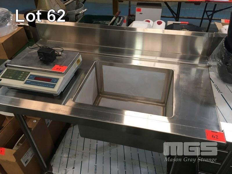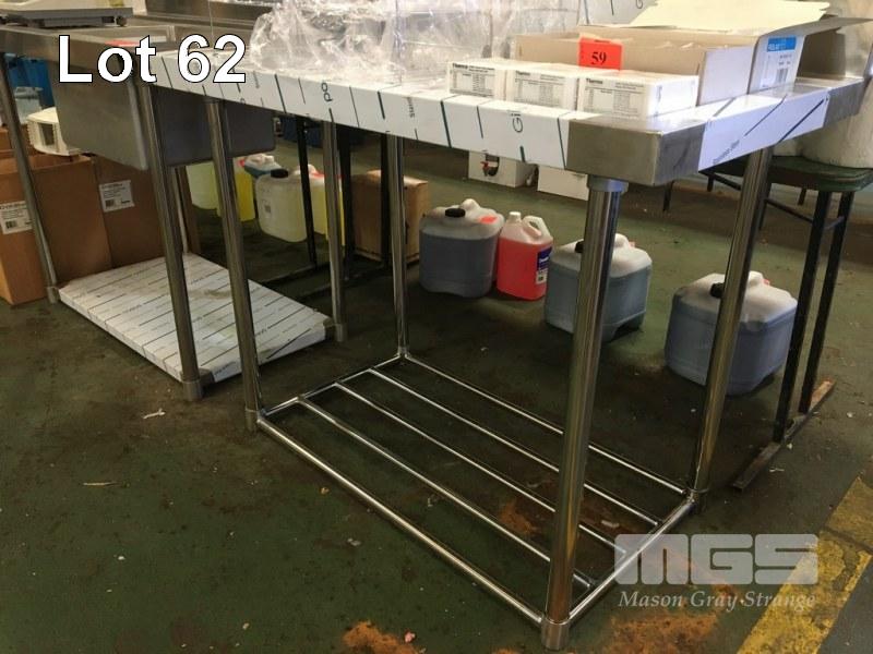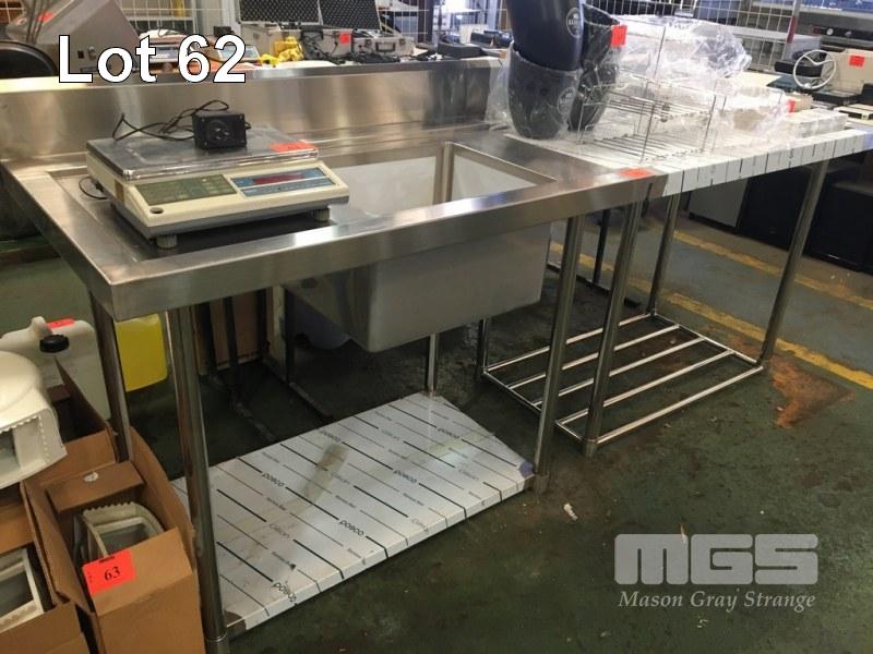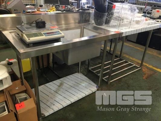 STAINLESS STEEL BENCH, SINK DEEP BOWL, SPALSHBACK, 1200 x 700 x 930mm 9H), 2 TIER & MATCHING BENCH RECESSED TO SUIT SINK/DRAIN TRAY WITH SPLASHBACK, 1200 x 700 x 930mm (H), 2 TIER