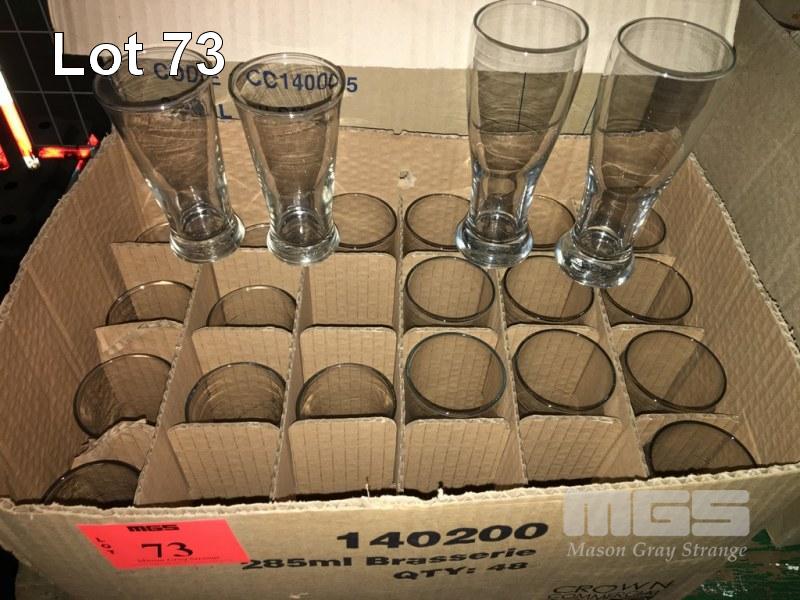 10 x BUTCHER/PILSNER GLASSES, 200ml & 13 x SCHOONER GLASSES, 285ml, 1 x BOX