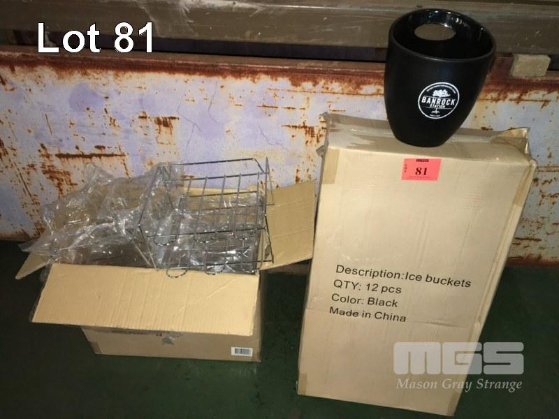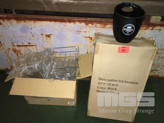 12 x ICE BUCKETS, BANROCK STATION & 6 x BOTTEL RACKS, CHROME WIRE, 6 BOTTLE, 2 X BOXES