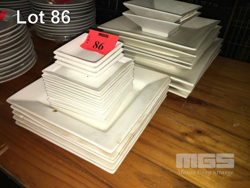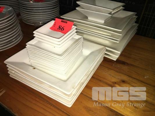 30 x PORCELAIN PLATES & SAUCERS, WHITE, SQUARE, ASSORTED SIZES