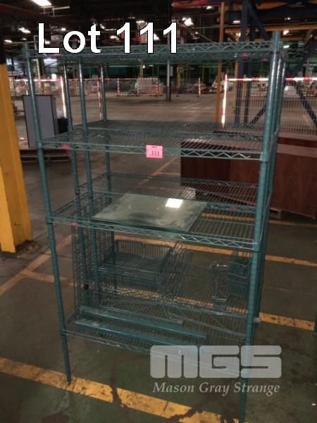 2 x STORAGE RACKS, METRO WIRE MESH SHELVE, STEEL FRAME, ADJUSTABLE & MODULAR, 1050 x 450 x 1900mm (H) & 1200 x 450 x 1900mm (H) WITH ASSORTED WALL MOUTN BRACKETS & SHELVES/BASKETS
