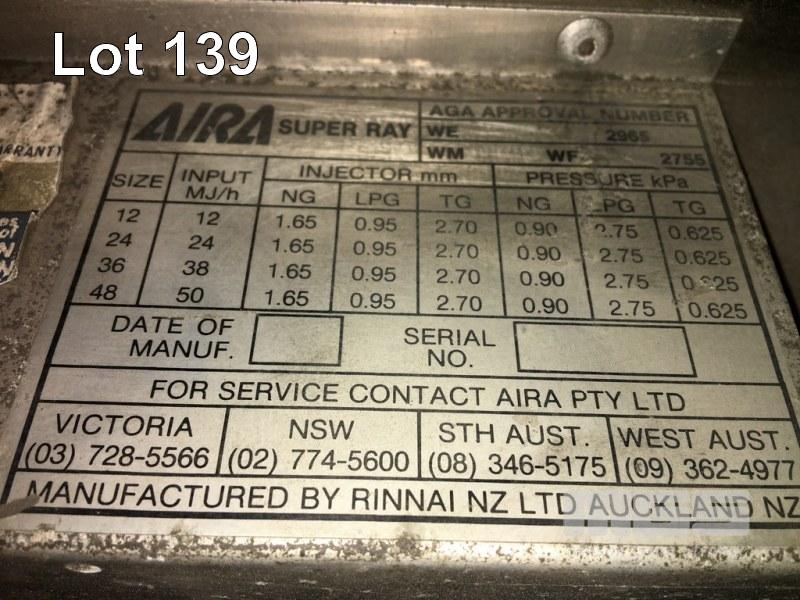 2 x RADIANT WORKSHOP HEATERS, AIRA MOD: SUPER RAY NATURAL GAS, 3 BURNER, WALL MOUNT