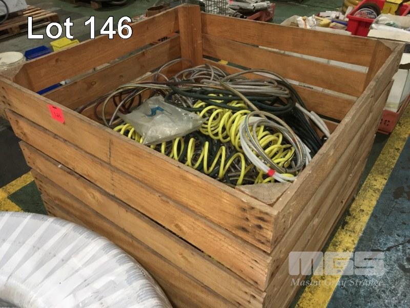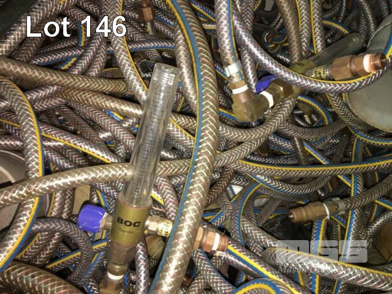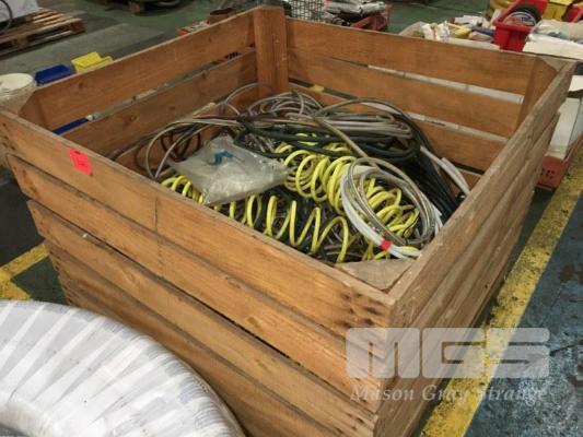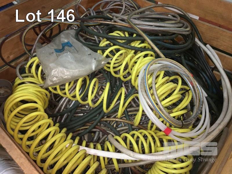 AIR & WATER HOSES, ASSORTED WITH FITTING INC FLOW METERS, CLIP ON FITTINGS, ETC, HUGE QUANTITY 1 x CRATE