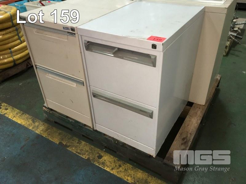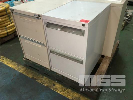 3 x 2 DRAWER STEEL FILING CABINETS, GREY & CREAM