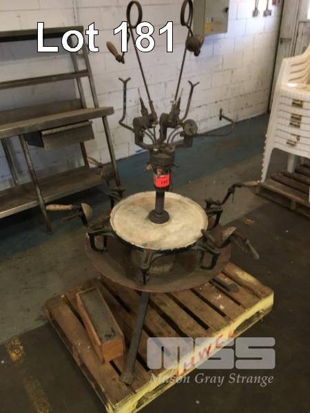 VINTAGE CHAMPAGNE BOTTLE FILLING MACHINE, GRILLIAT JAEGER, EPERNAY, FRANCE ROTARY, 6 BOTTLE CAPACITY & ACCESSORIES