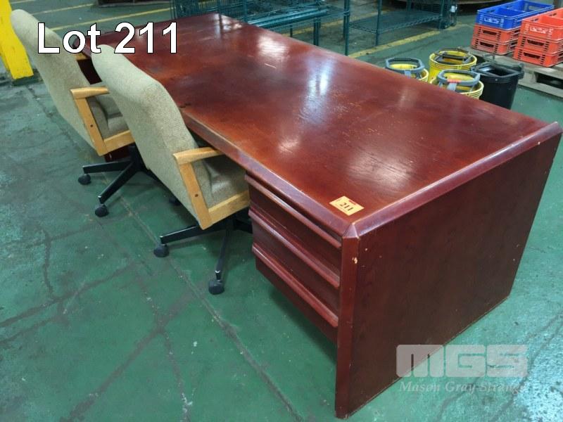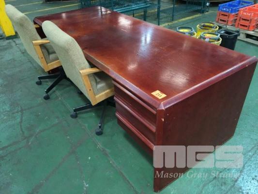 TIMBER DESK, LACQUER FINISH, 3 DRAWER, 2160 x 880mm, & 2 x OFFICE CHAIRS