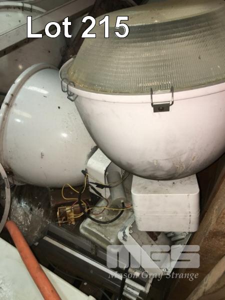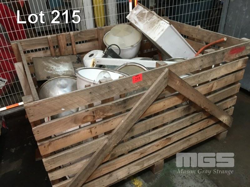 15 (APPROX) x HIGH BAY, YARD & FLURO LIGHTS, MH, HALOGEN, ETC & PVC CONTROL BOXES 1 x CRATE