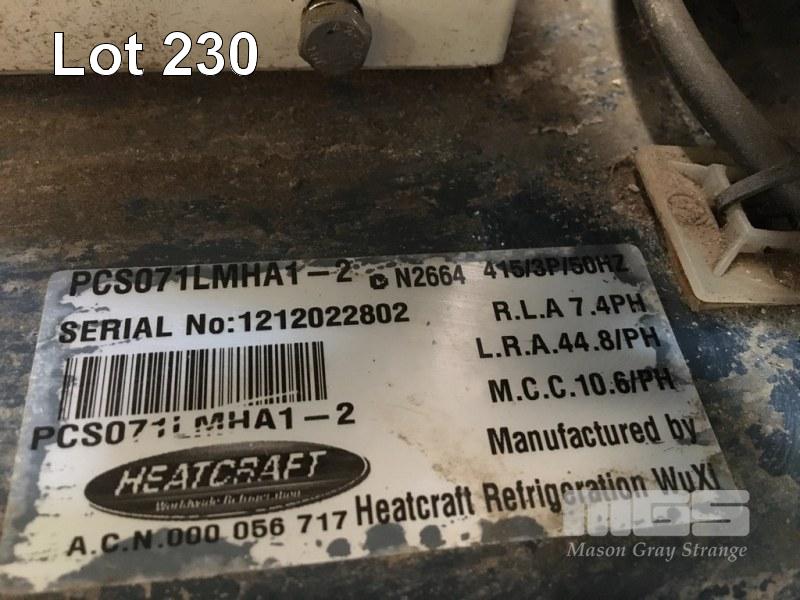 REFRIGERATION COMPRESSOR UNIT, KIRBY/HEATCRAFT MOD: PCS071LMHA1-2 WITH THERMOSTAT CONTROLLER, 415V 134A REFRIGERANT