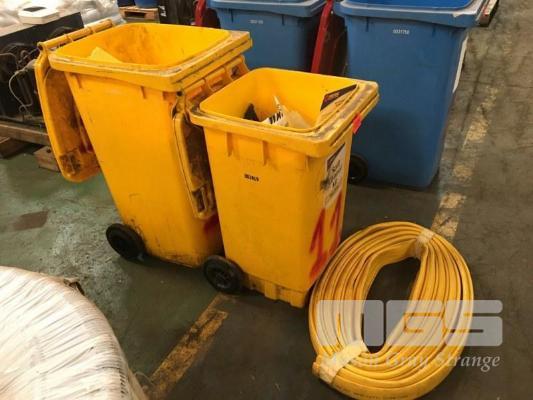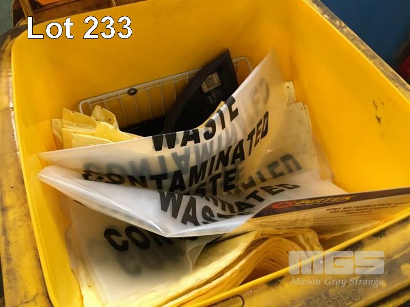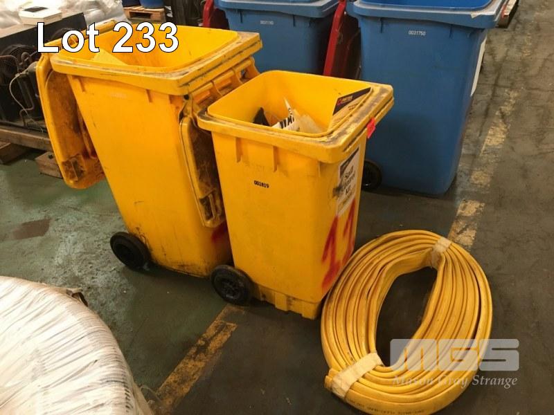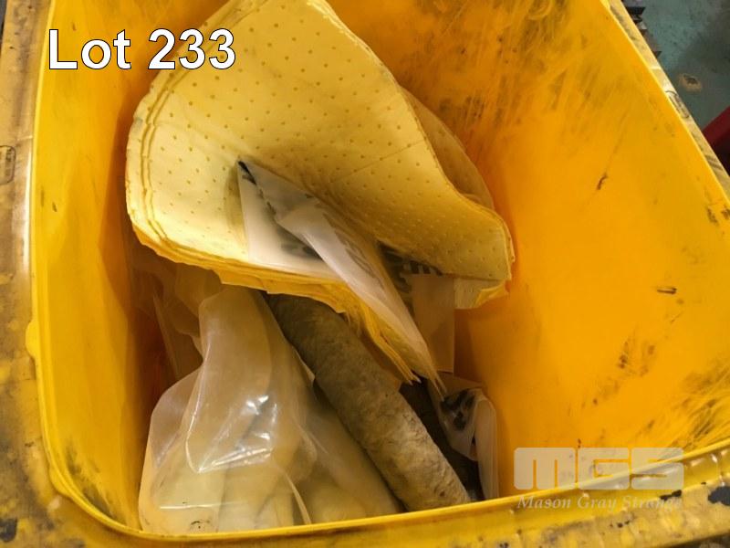 2 x SPILL CONTROL KITS IN YELLOW WHEELY BINS WITH 1 x ROLL OF FLEXI-BVND, SPONGE MATS, SOCKS, BAGS, ETC
