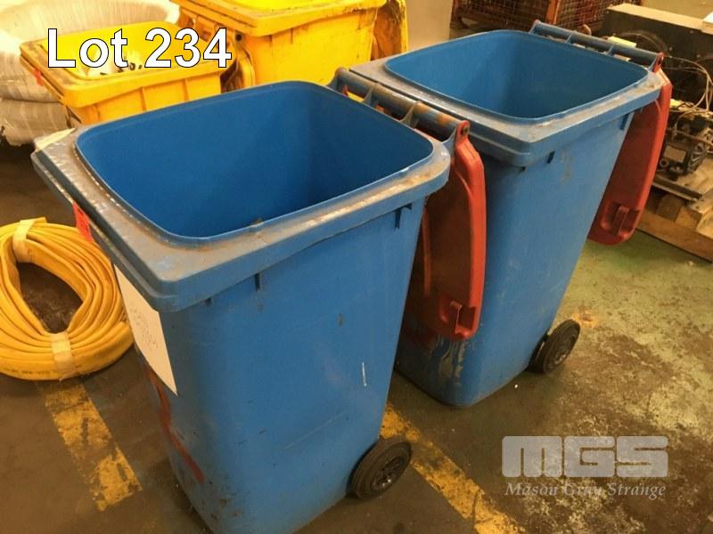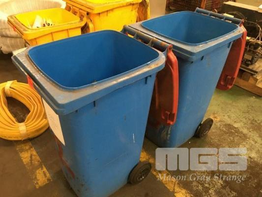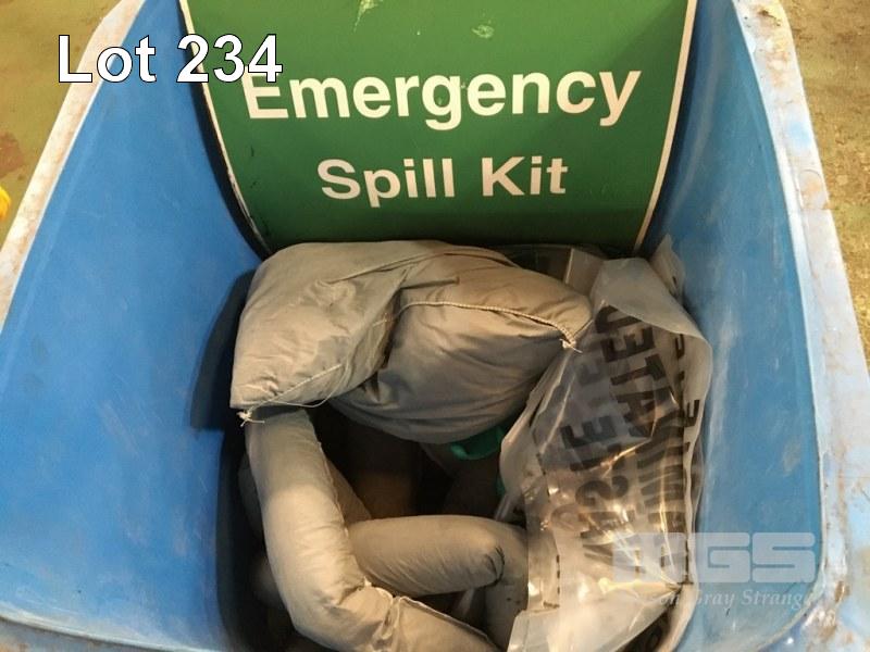 2 x SPILL CONTROL KITS IN BLUE WHEELY BINS WITH ABSORBENT MATS, SOCKS, BAGS, ETC