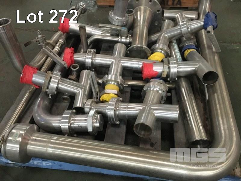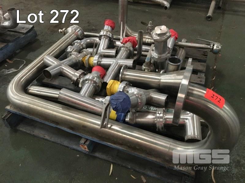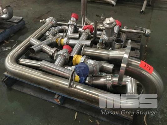 ASSORTED STAINLESS STEEL PIPE JOIN SECTIONS, INC T & ELBOW JOINTS, REDUCERS, VALVES, U-BENDS, ETC, DIAMETER INC 40, 75 & 100mm 1 x PALLET