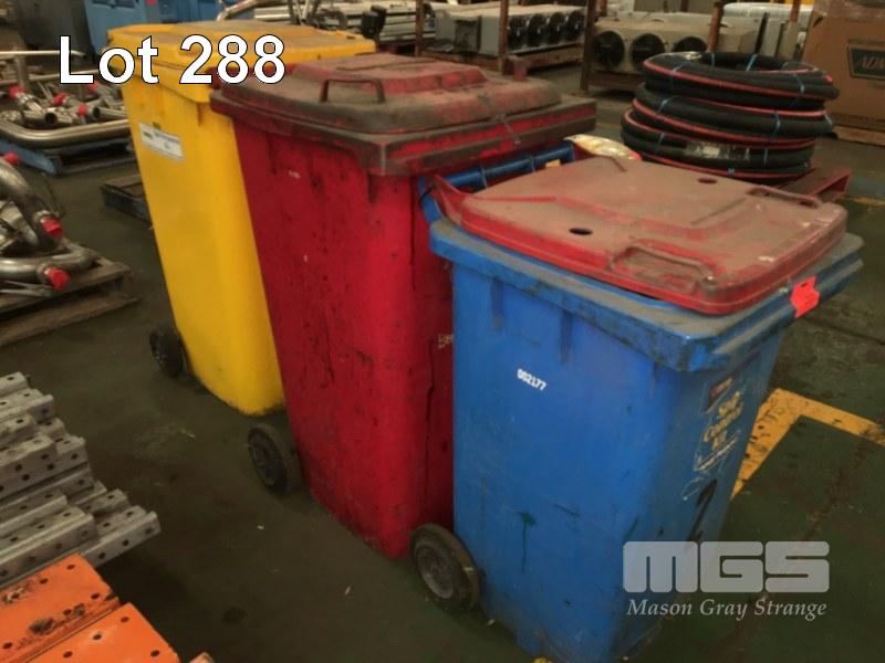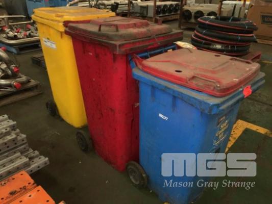 3 x WHEELIE BINS, 1 x FULL OF SAWDUST & BAG OF VALVOLINE ABSORBENT GRANULES, 20kg