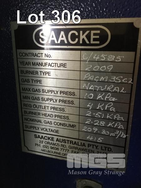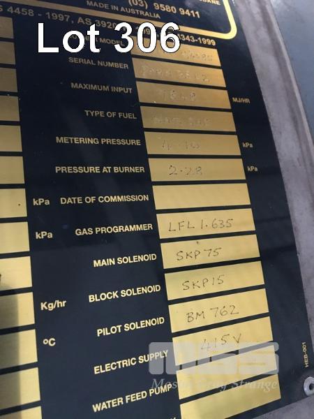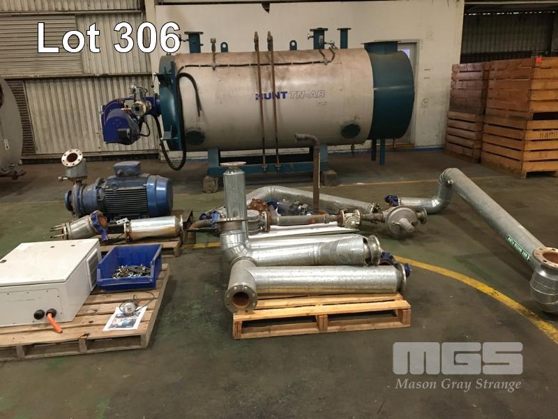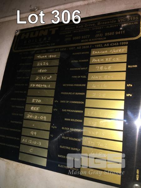 BOILER, HUNT TYPE: TN-AR-1800 DOM: 2009 S/NO: 240 NATURAL GAS FIRED SAACKE BURNER TYPE: PAGM35C2 WITH SOUTHERN CROSS PUMP 45kw, 415V SCHNEIDER CONTROL BOX INC ASSORTED VALVES & PIPEWORK