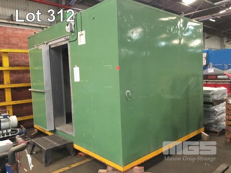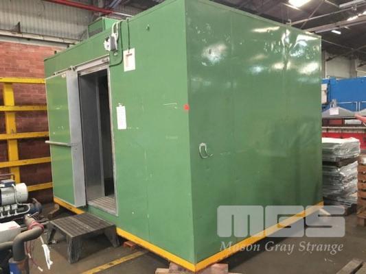 BLAST FREEZER, SIMS REFRIGERATION FITTED WITH MULLER 4 FAN BLOWEER UNIT MOD: MNDE67 & BOCK COMPRESSOR UNIT MOD: HAC4/650-4 SKID MOUNTED WITH THERMOSTAT REFRIGERANT R404A EXTERNAL FREEZER: 3000 x 4000 x 3850mm (H) COOLING FAN UNIT MOUNTED TO ROOF & CONTROL PANEL MOUNTED TO SIDE