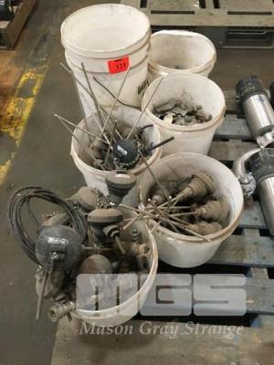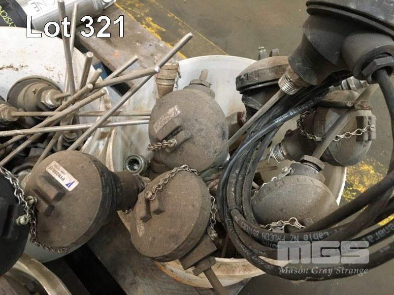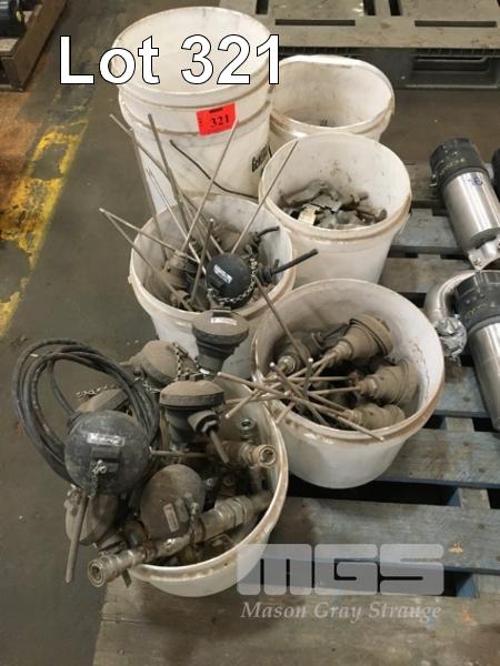 6 x TUBS ASSORTED TEMPERATURE TRANSMITTERS & PROBES, STAINLESS STEEL BUTTERFLY VALVES, FITTINGS, ETC