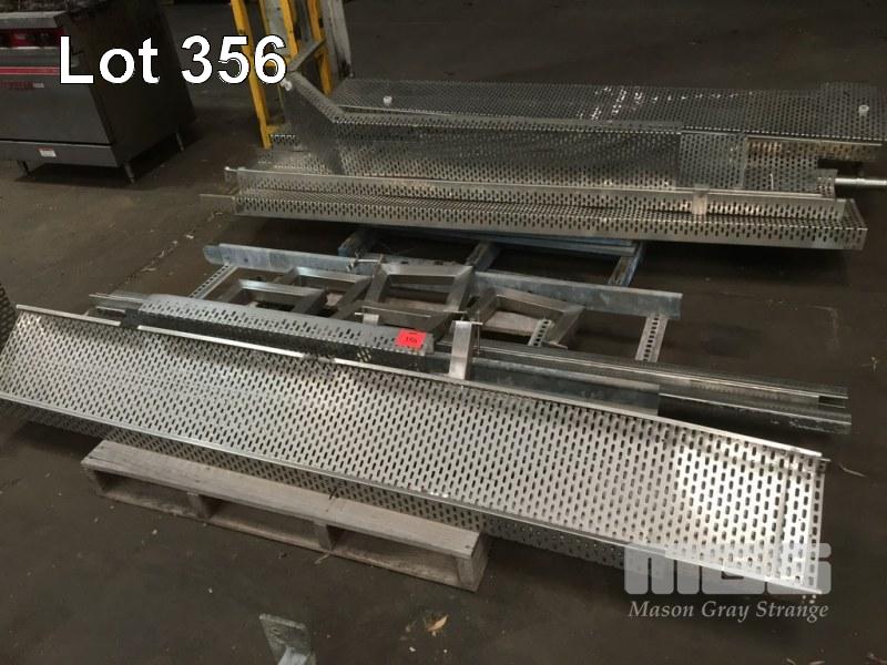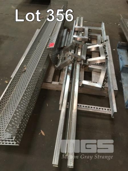 STAINLESS STEEL CABLE/HOSE TRAY, PERFORATED, 300mm (W), ASSORTED LENGTHS UP TO 2400mm WITH BRACKET & SUPPORTS, 2 x PALLETS