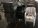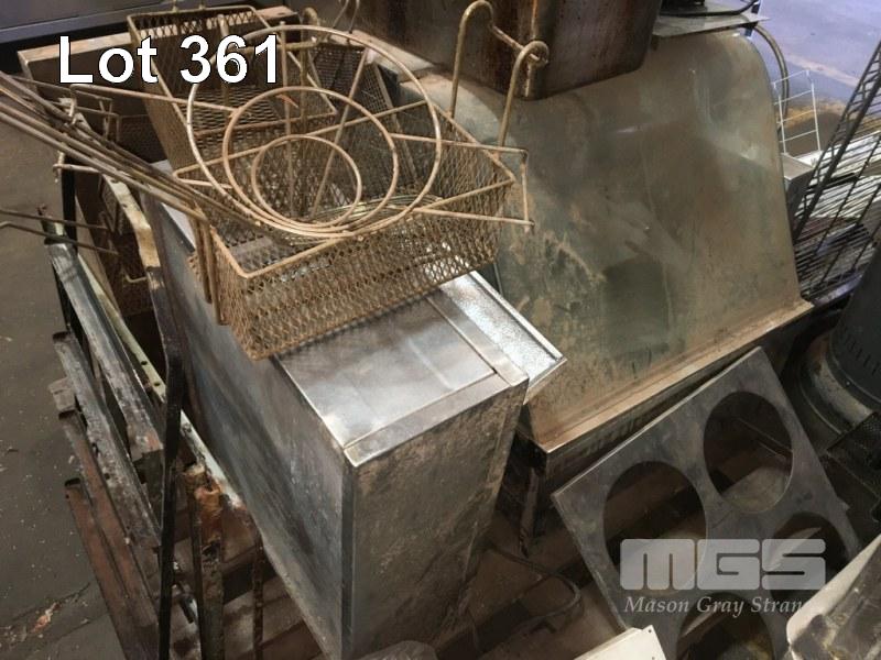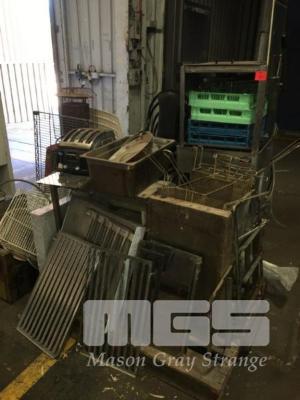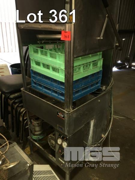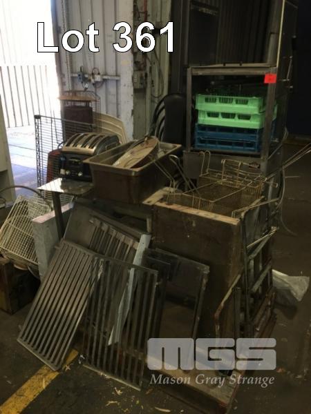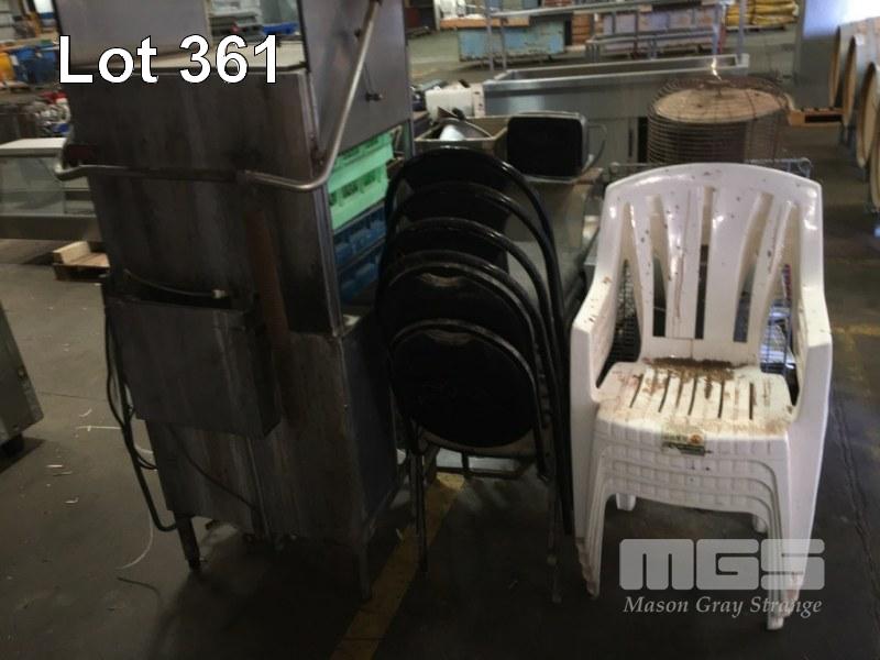 COMMERCIAL DISHWASHER, HOBART GAS HOT PLATE GRILL, ROBAND BAIN MARIE, GLASS FRONT, TWIN POT, ASSORTED CHIP BINS, STRAINERS, RACKS & CHAIRS, ETC