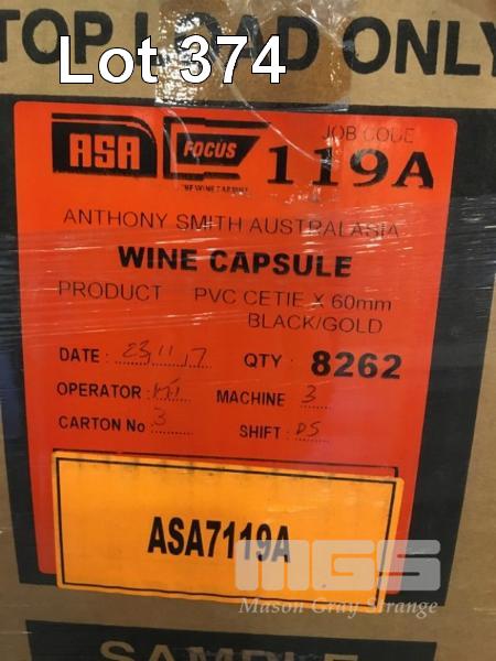 WINE CAPSULES, ANTHONY SMITH AUST PVC CETIE x 60mm GOLD/BLACK BRANDED, GRANT BURGE 24 x BOXES, 8262/BOX 1 x PALLET