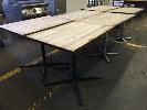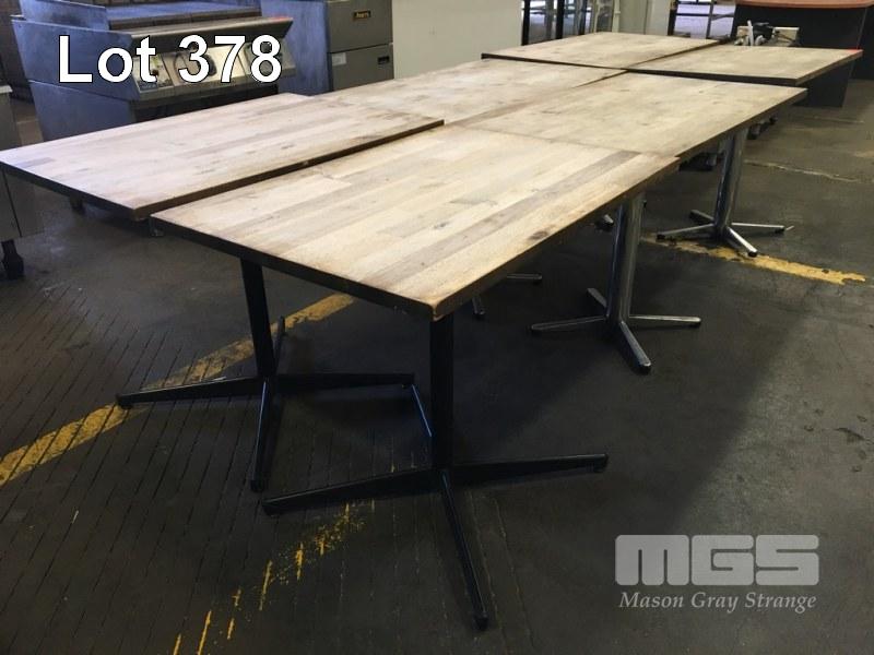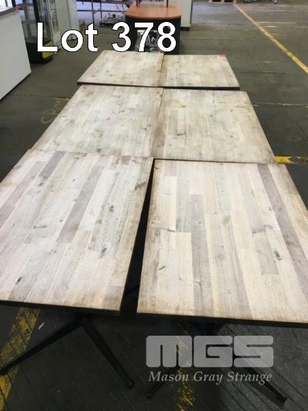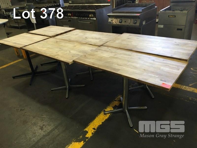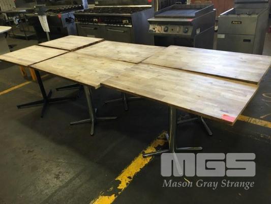 ASSORTED CAFE TABLES, TIMBER TOP, PEDESTAL BASE 4 @ 1100 x 600 x 730mm 2 @ 860 x 600 x 730mm