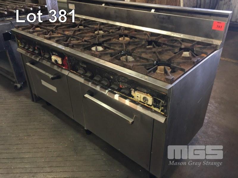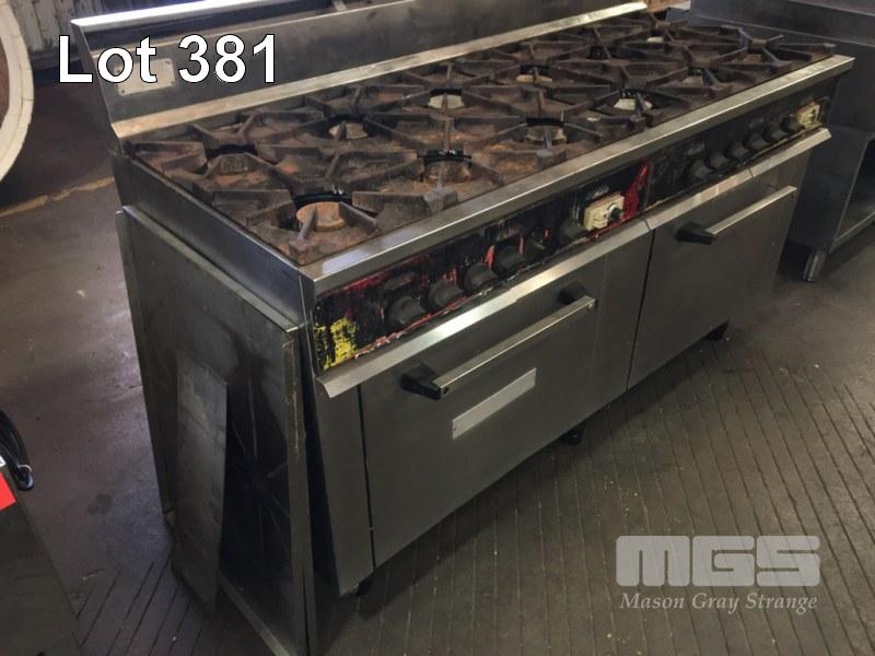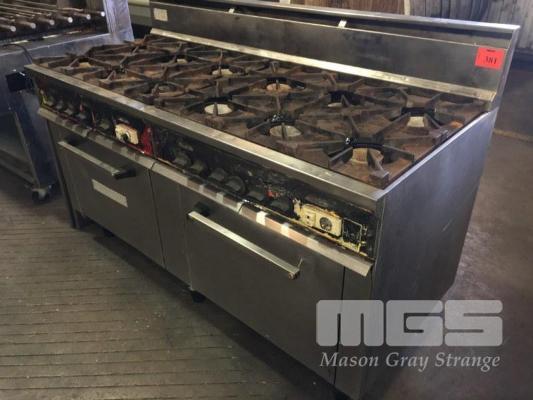 RANGE OVEN, WALDORF 12 BURNER TWIN OVEN NATURAL GAS FIRED, STAINLESS STEEL 1700 x 770 x 1140mm WITH STAINLESS STEEL SHEET TOP TO FIT 3 SECTION