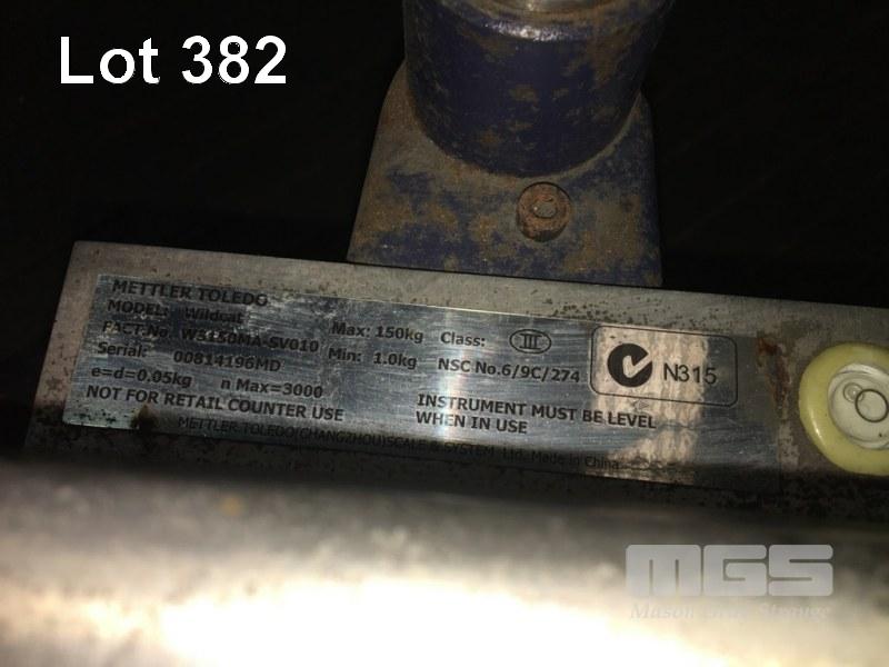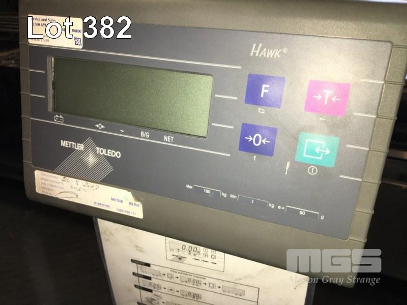 DIGITAL PLATFORM SCALES, METTLER TOLEDO MOD: HAWK DISPLAY & WILDCAT PLATFORM MAX WEIGHT: 150kg x 50g 240V ON STAND