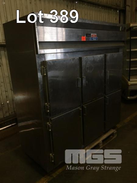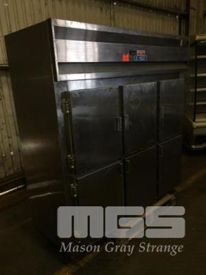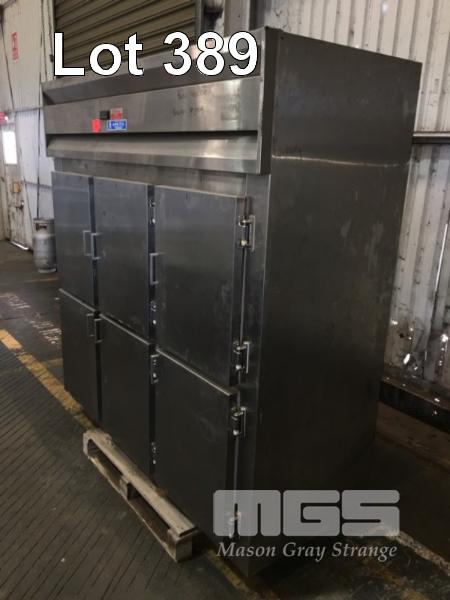 STAINLESS STEEL FRIDGE FREEZER, ALBANY TWIN COMPARTMENT TOP/BOTTOM EACH WITH 3 DOORS, SINGLE TOP MOUNT COMPRESSOR, REQUIRES RE-GASSING, 240V 1800 x 750 x 1850mm