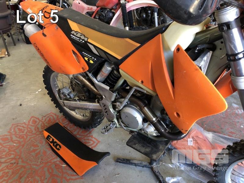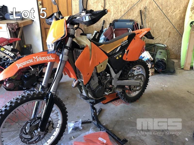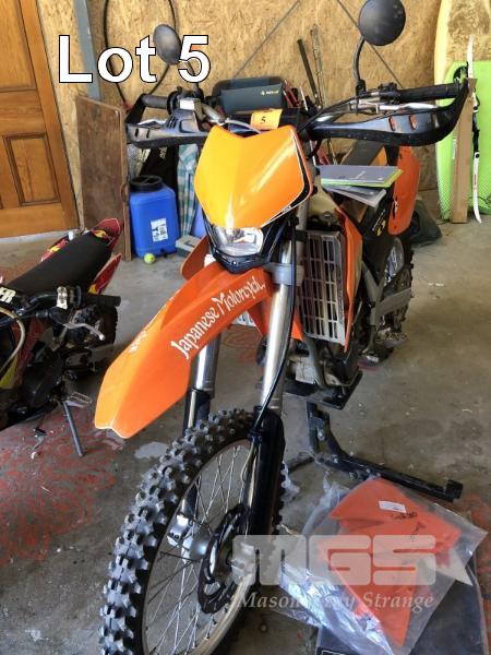 KTM DIRT BIKE VIN: VBKRGA4013M534439 ENG: 1-590*8876* ODO: 400 kms ESTIMATE SPARE PLASTICS, SEAT, ETC. RUNS, RIDES, BATTERY GOOD (NO PAPERS, NO OWNER'S MANUAL, NO SERVICE BOOKS)