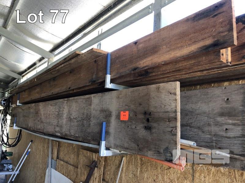 2 x WALL RACKS OF EXOTIC TIMBER PLANKS, CONDUIT, ETC.
