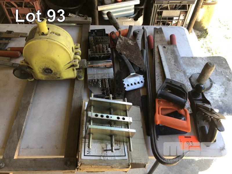 ASSORTED TOOLS, PUMP, HAND PLANER, SAWS, ETC.