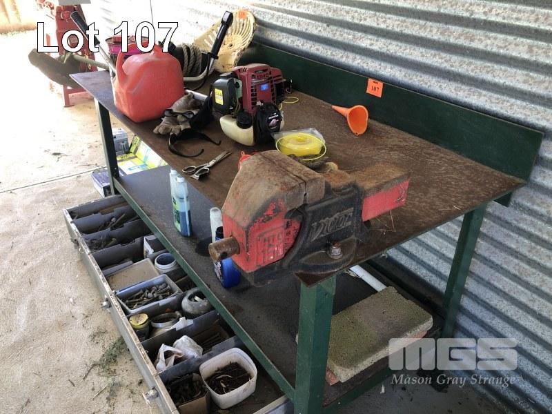 PLATE STEEL BENCH, 180cm WITH BACK LIP & VICTA VICE