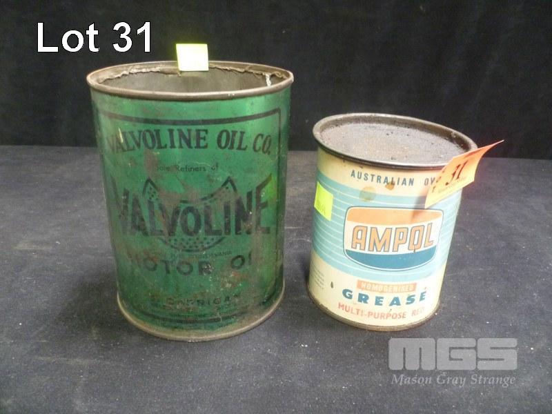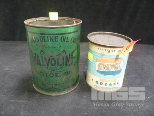 VALVOLINE OIL TIN, 100% PURE PENNSYLVANIA MOTOR OIL, 1 IMP QRT (TOP CUT OUT) & AMPOL HOMOGENIZED GREASE TIN, MULTI PURPOSE RED, 1LB