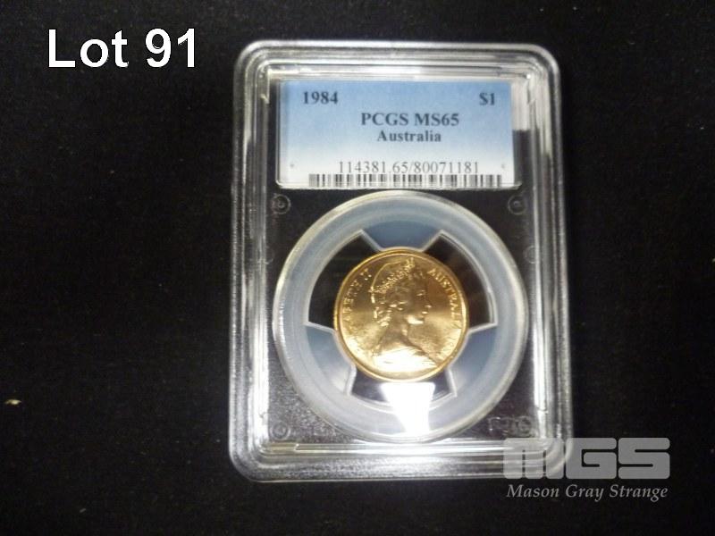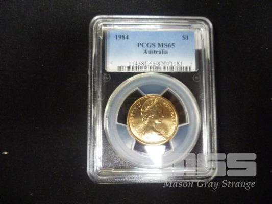 1ST YEAR OF DOLLAR COINS 1984 1 DOLLAR GRADED GEM UNC MS65