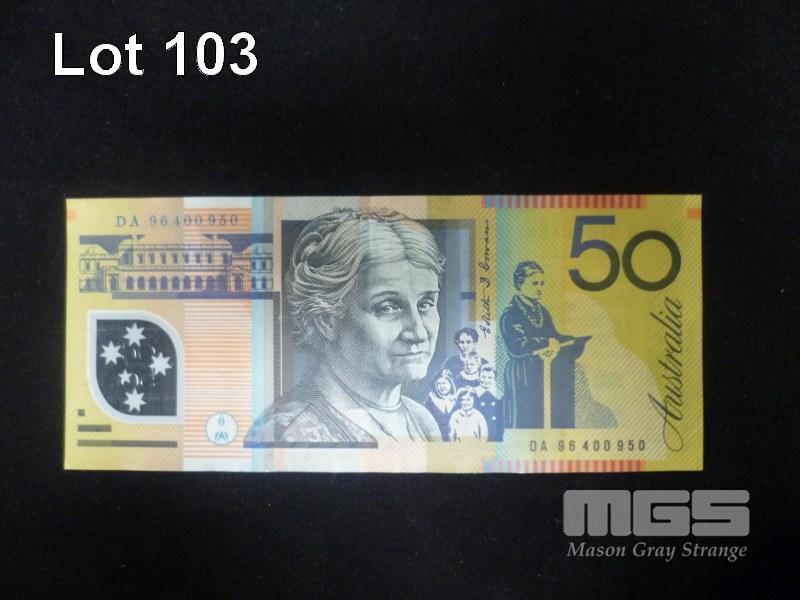 AUSTRALIA, $50 POLYMER BANKNOTE, LAST SIGNITURE PREFIX, EVANS/FRASER, DA 96400950 (CIRCULATED)