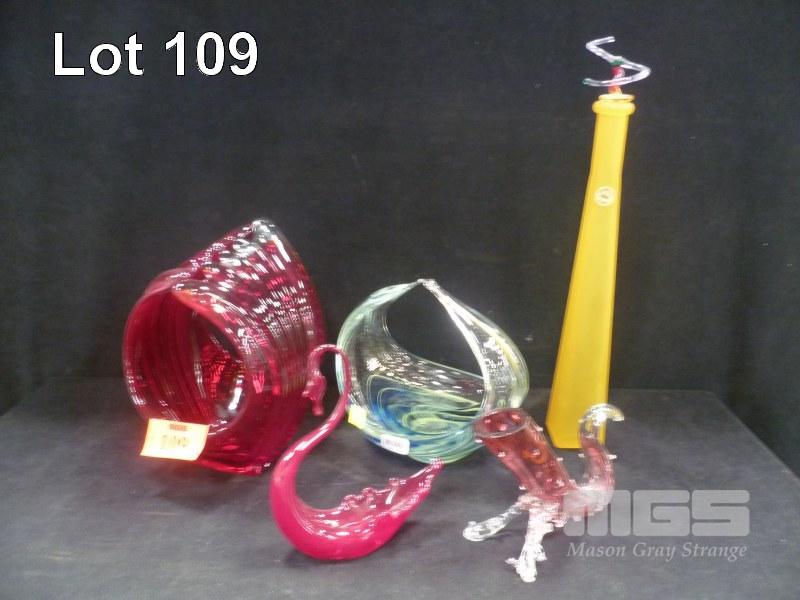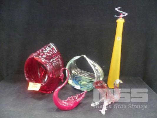5 x ASSORTED PIECES ART GLASS INCLUDING HOKITIKA, KOF, ETC
