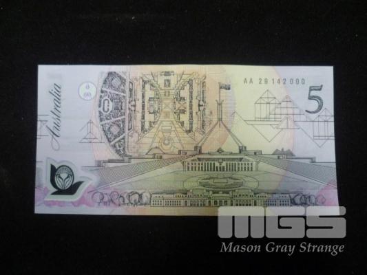 AUSTRALIA, $5 POLYMER BANKNOTE, COLE/FRASER, AA 29142000