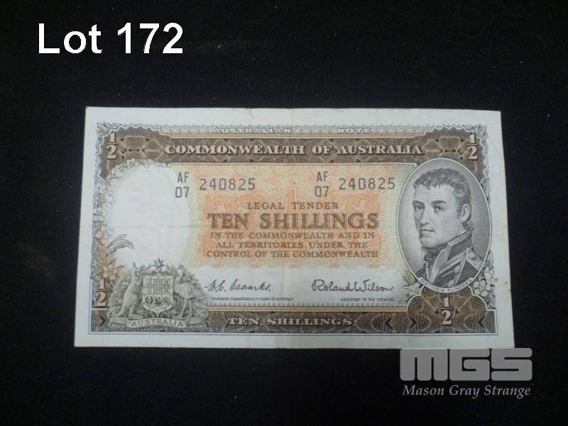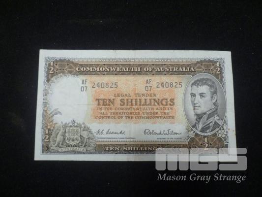 COMMONWEALTH OF AUSTRALIA, TEN SHILLINGS, BANKNOTE, COOMBS/WILSON, AF07 240825
