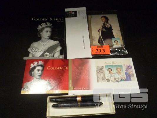 2 x QUILL PENS & AUSTRALIA POST QUEEN ELIZABETH GOLDEN JUBILEE STAMP BOOK
