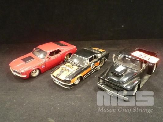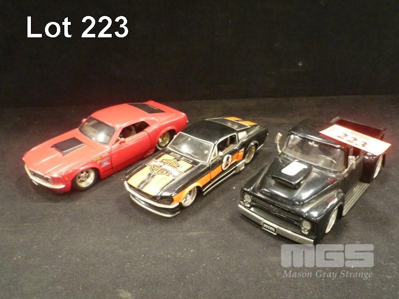 3 x 1:24 SCALE DIECAST VEHICLES, 1967 FORD MUSTANG, 1970 FORD MUSTANG BOSS & 1956 FORD F100