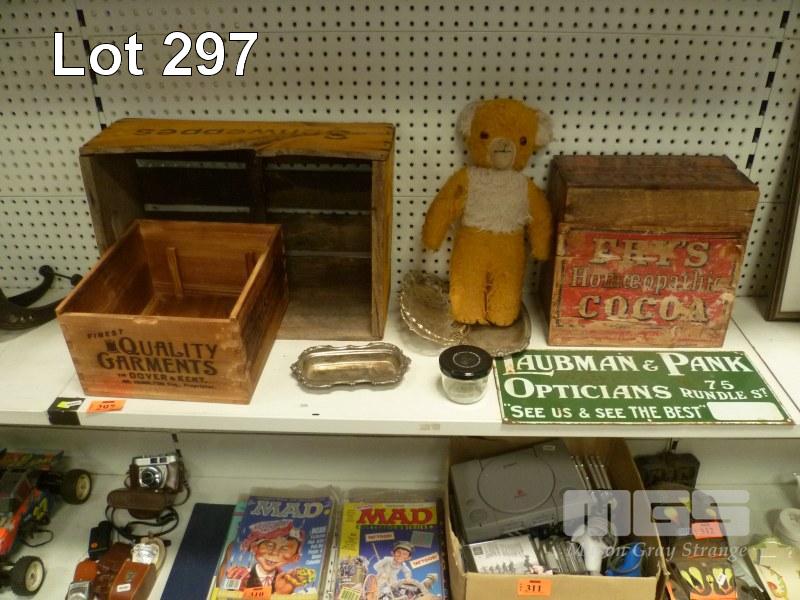LAUBMAN & PANK ENAMEL SIGN, SCHWEPPES CRATE, DOVER &KENT CRATE, FRYS COCOA CRATE, TEDDY BEAR & EPNS TRAYS