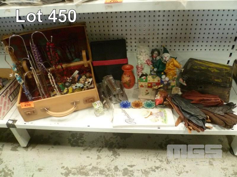 ASSORTED COSTUME JEWELLERY, LEATHER GLOVES, WATCH BAND & CLOWNS