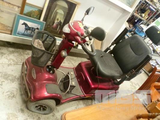 MERITS AURORA MOBILITY SCOOTER, (NO KEY), CHARGER, (ALL FAULTS STEER), COLUMN COVER MISSING