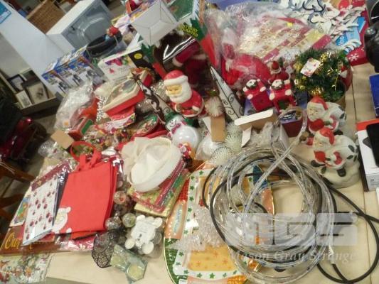 ASSORTED XMAS DECORATIONS, ETC, 1 x TABLE