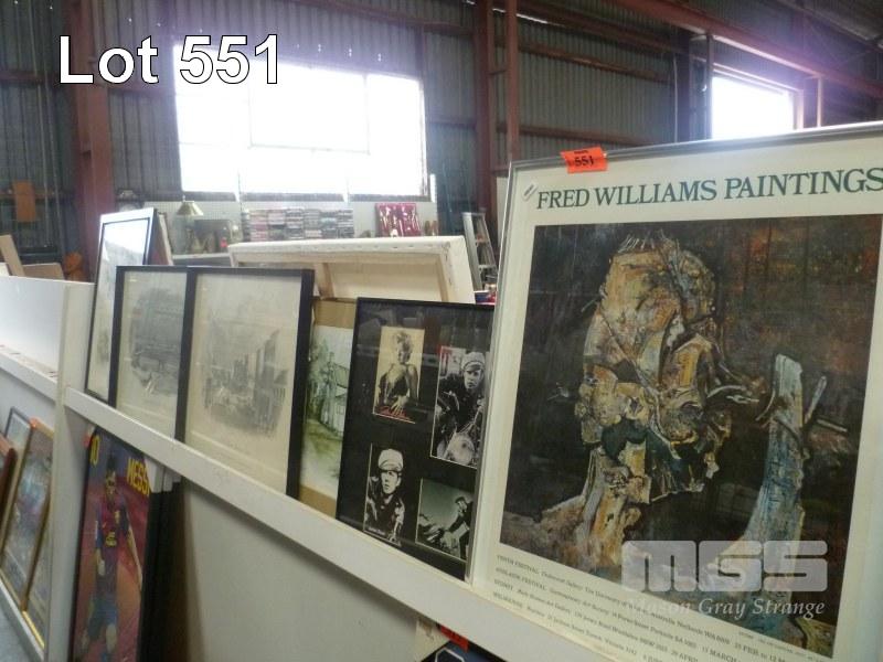 5 x PRINTS, INCL LITHOGRAPHS, "FRED WILLIAMS PAINTINGS" PROMOTIONAL FRAMED POSTER ETC