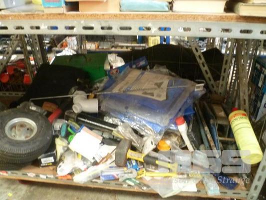 ASSORTED HARDWARE, TOOLS, TARPS, JEANS, ETC, 1 x BAY